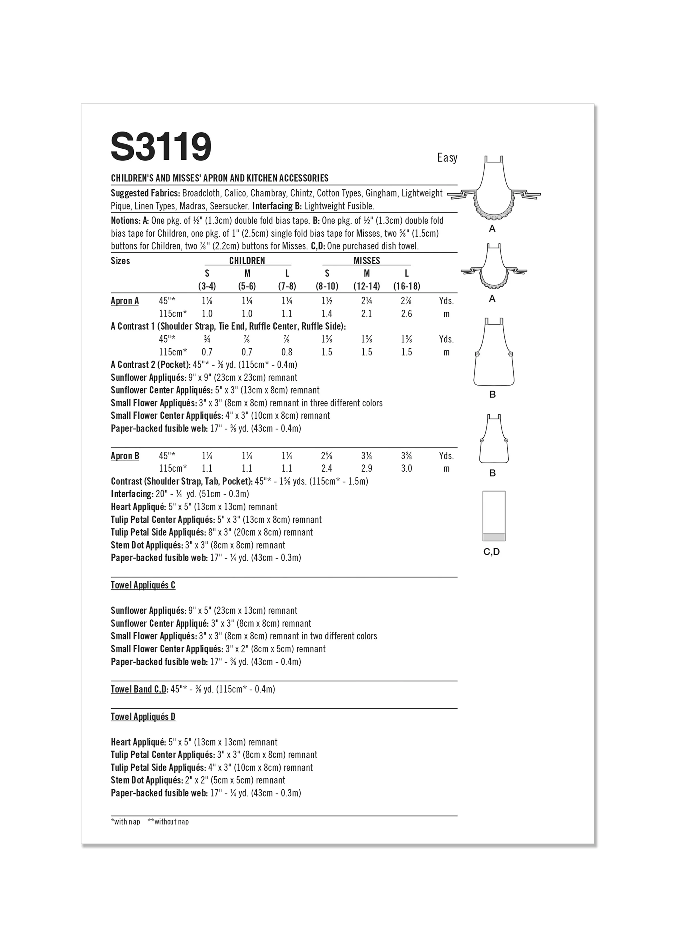 Simplicity Pattern S9767 Children's and Misses' Wrap Around Apron and Scarf Hat