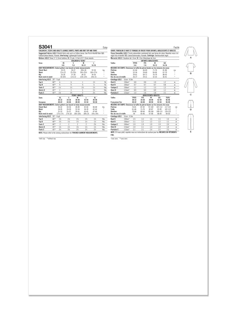 Simplicity Pattern SS3041 Children's, Teens' and Adults' Lounge Shorts, Pants and Knit Top and Tunic