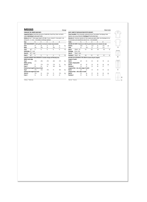 McCall's Pattern M8568 Toddlers' Top, Shorts and Pants