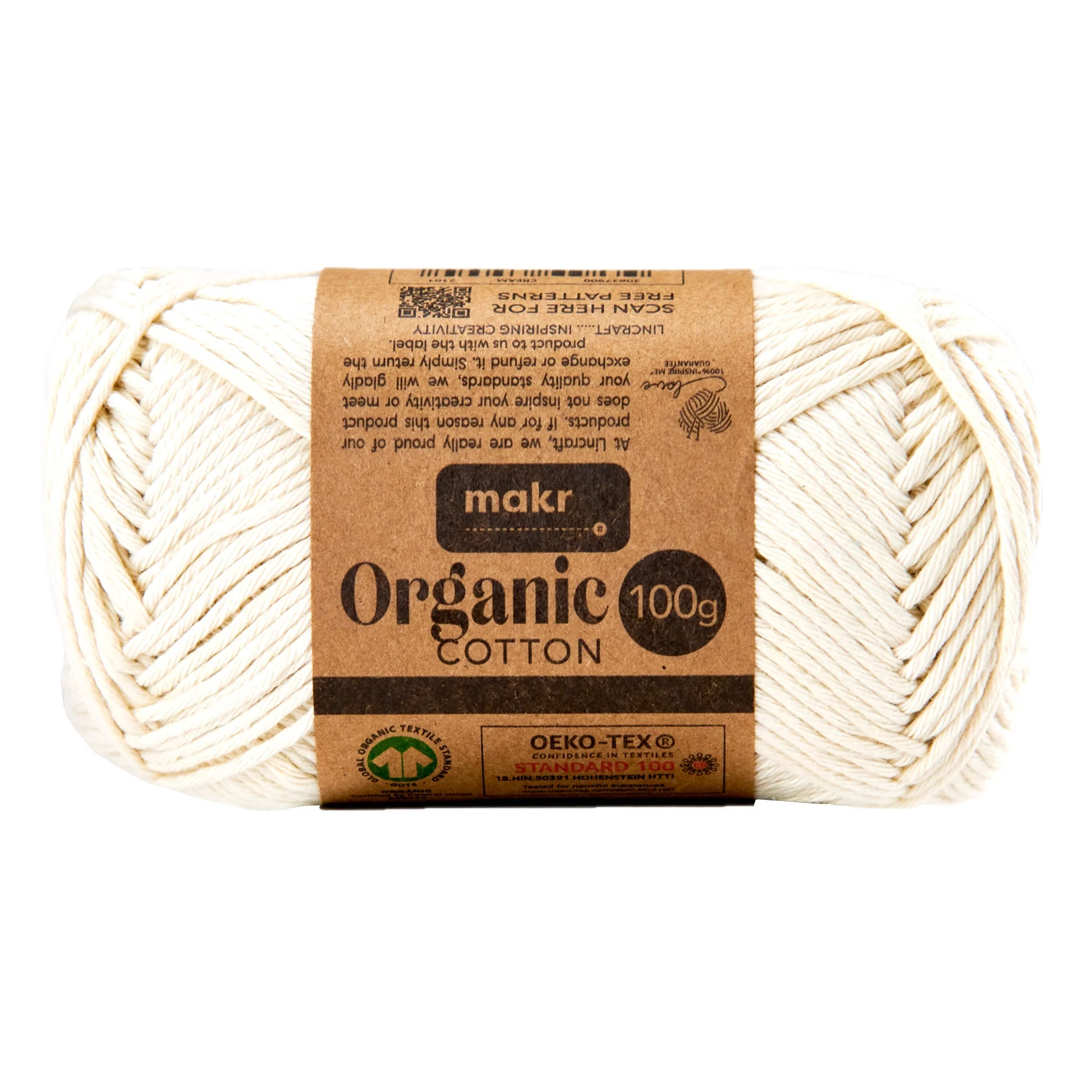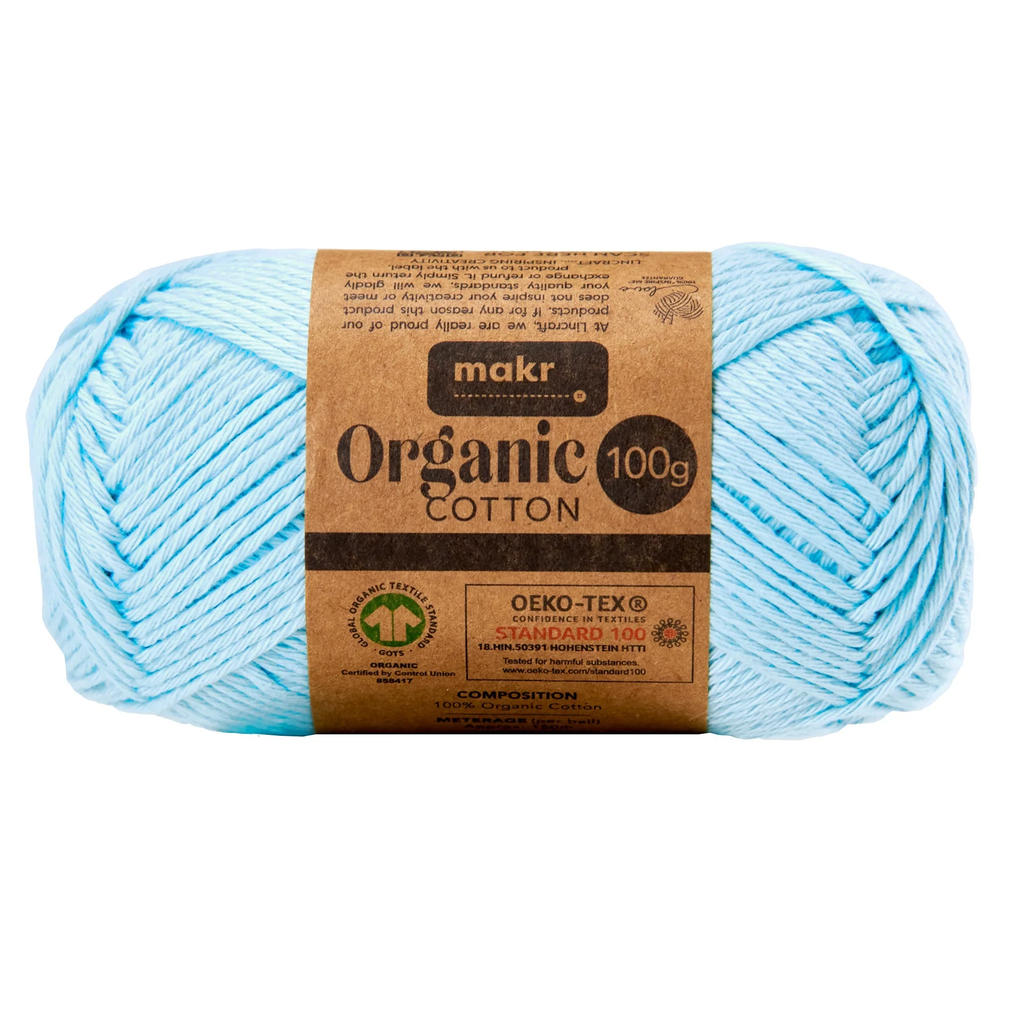 Makr Organic Cotton Crochet & Knitting Yarn - 100g Cotton Yarn